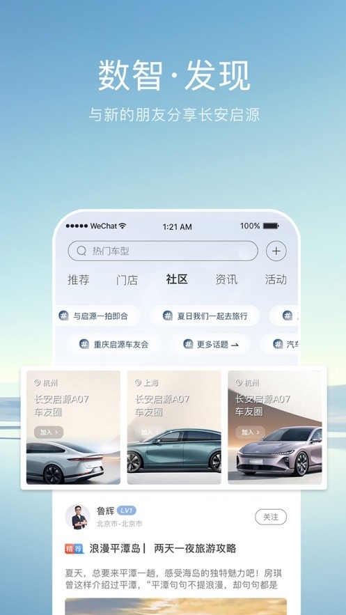启源汽车是一款专门为长安启源车主打造的手机汽车服务软件,在此软件当中大家可以一键管理您的车辆,可以看到车辆的实时定位以及开关锁解锁车辆,同时软件当中还具有强大的社区功能,大家可以在社区当时认识到许多的车友,可以互相交流车辆的各种功能,分享开车的经验等等,喜欢的朋友一起来下载吧!