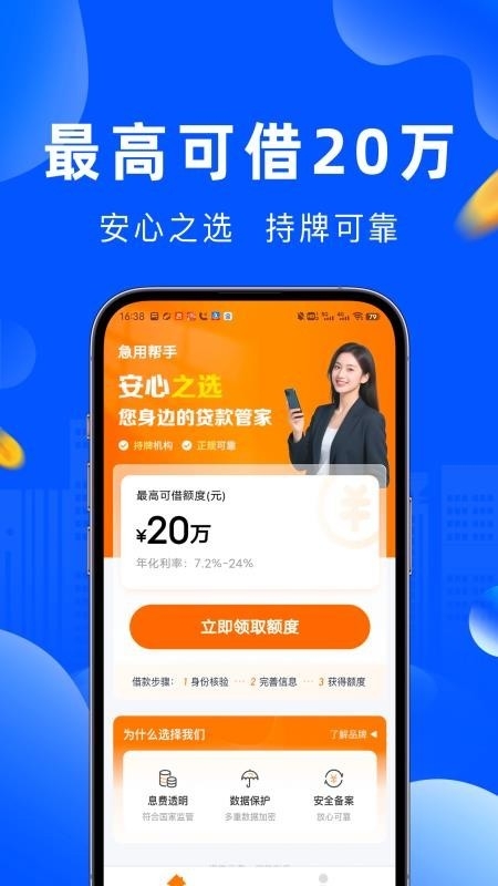 4、安全可靠:作为正规持牌消费金融机构,服务全程公开透明,年化利率(单利)区间为7.2%至24%,严格遵循监管要求,保障用户权益。