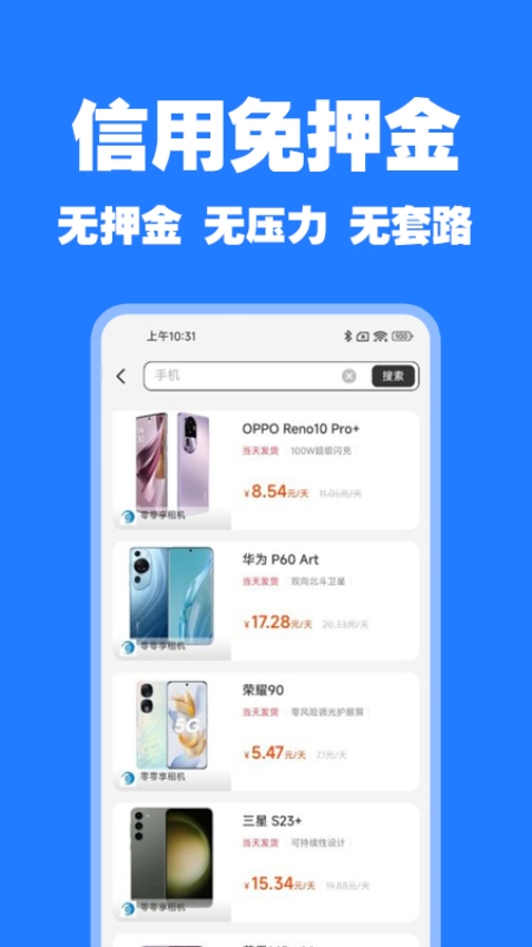 爱租物app让用户以后可以轻松的租用各种数码产品了,你只要有需求就可以通过平台快速的下单租赁了,让你能够体验不同品牌的设备,这里为你提供了丰富的租赁套餐,用户就能够选择更合理的套餐快速下单了,通过这种模式就可以让你享受零押金租赁手机,非常的轻松省钱!
