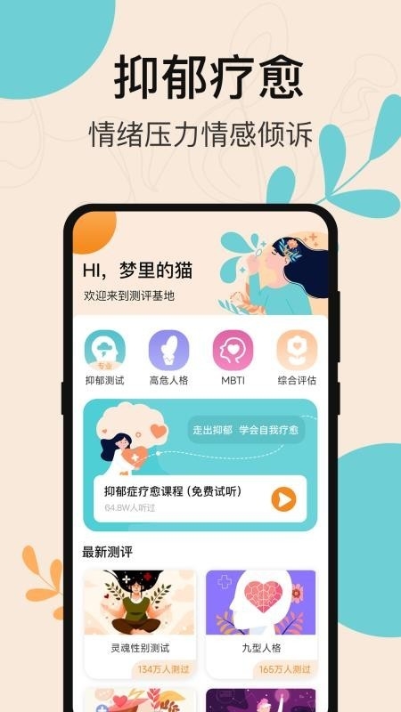 1、心理健康测试:提供多种心理健康测试,包括抑郁症测试、情感测试、职业测试等,帮助用户全面了解自己的情绪状态和心理健康状况。