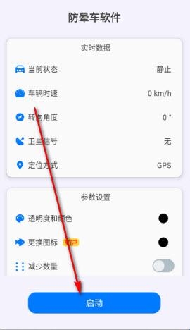 3、点击下方【启动】,即可自动开启车辆运动提示;
