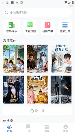 2、设有专门的听书专区,提供丰富的听书资源,支持在线播放和下载。