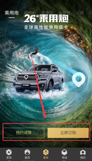 4、爱车板块支持用户预约实地试驾体验,并可在线直接完成车辆订购流程。