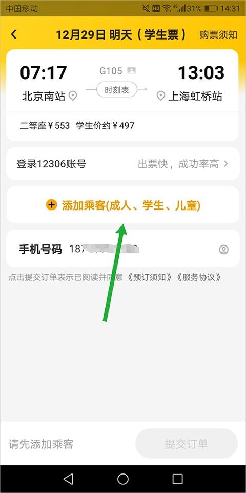 3、登录12306账号即可确认信息购买车票(是否确认为学生将根据你在12306上实名认证的信息)