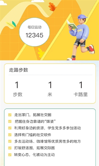 1、记录步数:实时跟踪用户的今日步行,记录具体步数。