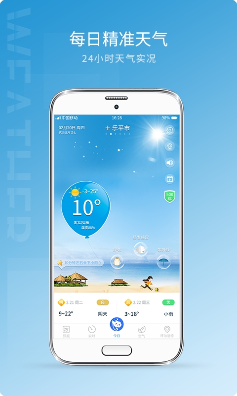 2、全面天气温度、天气状况、风向、湿度、空气质量、生活指数。