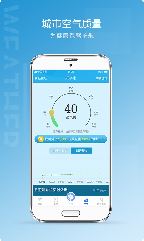 4、空气指数小时级PM2.5监测和空气质量排行榜,关注空气质量,关爱你的健康。
