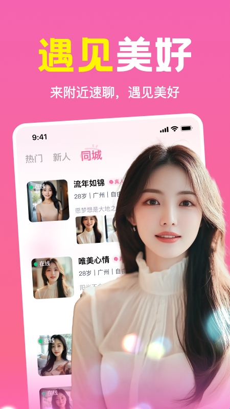 同城私语是一款专注附近交友的即时聊天平台。它基于地理定位,为您智能推荐身边的活跃用户,支持文字、语音及趣味互动。通过兴趣匹配与动态分享,帮助您轻松结识同城朋友,拓展本地社交圈,发现身边的新鲜事与共同话题。
