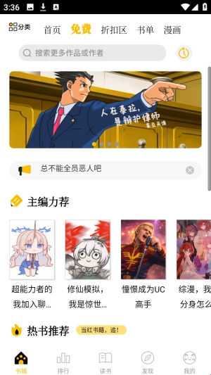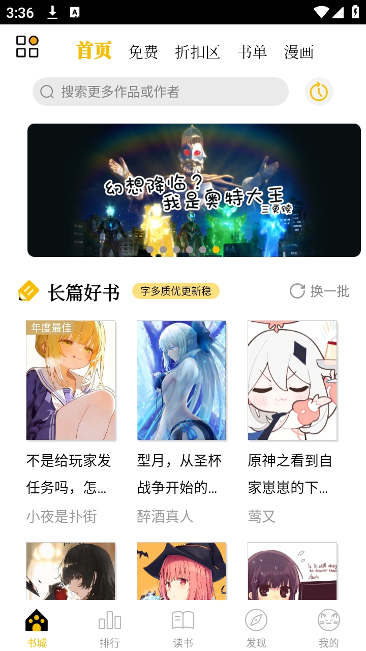 用户可在本栏目搜索自己感兴趣的作者和作品,或根据不同推荐和书单,查找自己想看的书籍。