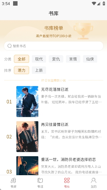 3、浏览书库页面,查看各种分类排行榜,快速找到喜欢的小说类型。