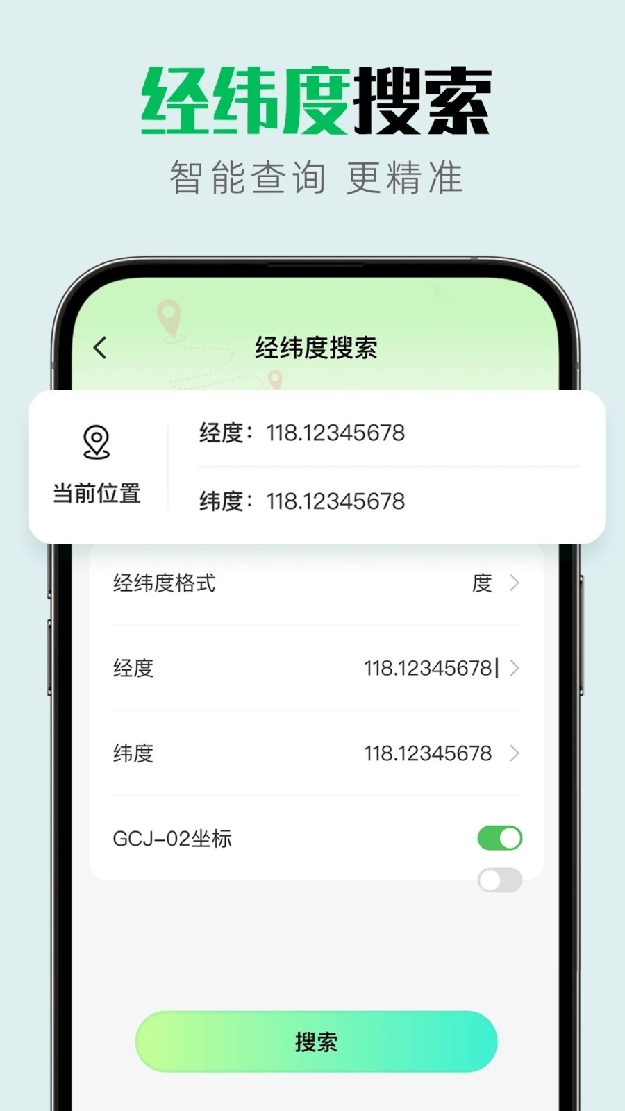 2、经纬度搜索,智能查询支持经纬度搜索功能,用户可以快速定位到具体地点,进行详细查询,满足专业需求。