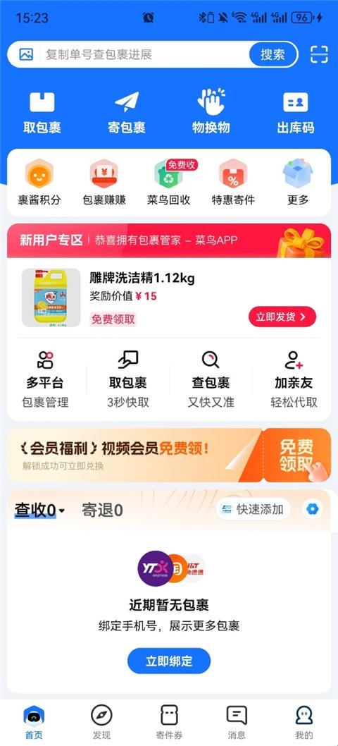 无需取件码,使用菜鸟APP扫一扫即可一键取出自提柜和驿站包裹。