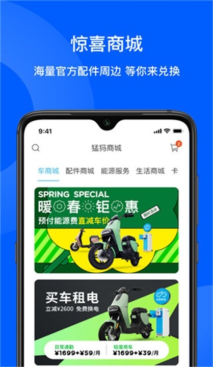 3、我的:积分、签到、BaaS电池租用、预约试驾、邀请购车等