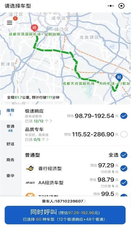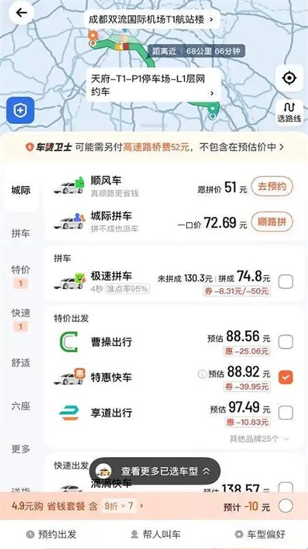 3、覆盖国内超过400个城市,运力充足、车型多样,满足您多场景出行需求。