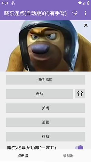 2、具备了点击、连点、滑动、长按、双击、自动连点等挂机功能,轻松实现一键启动和关闭。