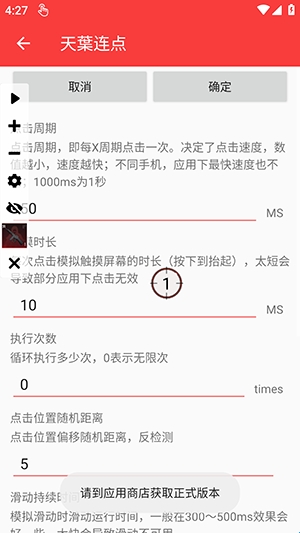1、只需简单设置点击位置、频率等参数,即可快速上手并运行,一键启动自动化任务。