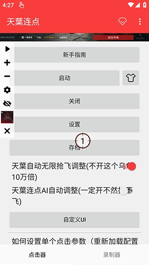 天葉连点是一款最近十分火爆的自动连点器软件,软件具备了核心的智能点击功能,大家可以根据自己的要求去设置连点的次数以及频率,这样在我们需要高强度连点需要的时间就可以直接派上用场,而且此软件适应了市面上绝大部分的安卓手机,喜欢的朋友就一起来下载吧!