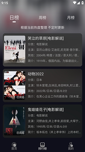 2、点击下方的榜单选项可以查看今日更新的热门影片。
