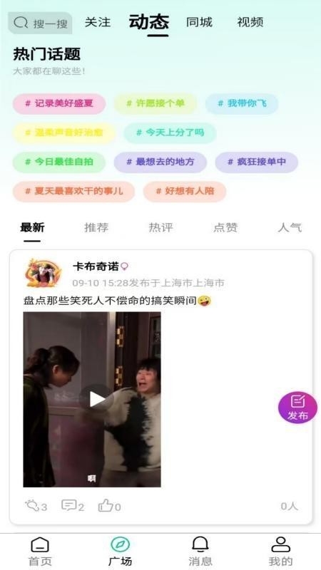 3、具备动态发布与浏览的支持功能,既能够发布文字、视频等不同形式的动态内容,也可以查看其他用户发布的动态并开展互动操作。