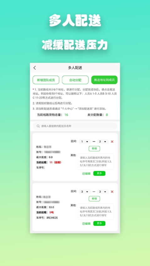 还提供了线上的多人配送,从而可以实现多人配送订单,有效减轻配送压力。