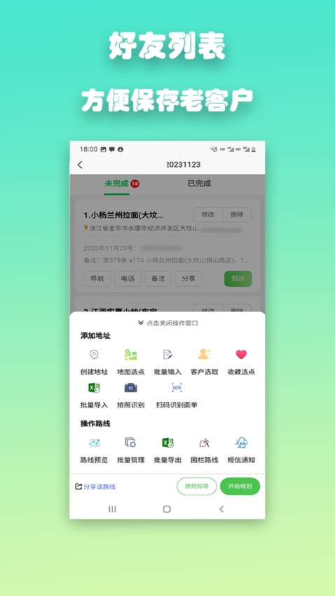 1、路线规划:根据用户输入的送货地址,智能规划出最优的送货路线。