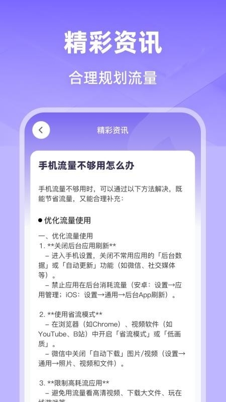 诸多精彩资讯内容,覆盖诸多流量使用攻略,帮助你能合理规划使用流量;