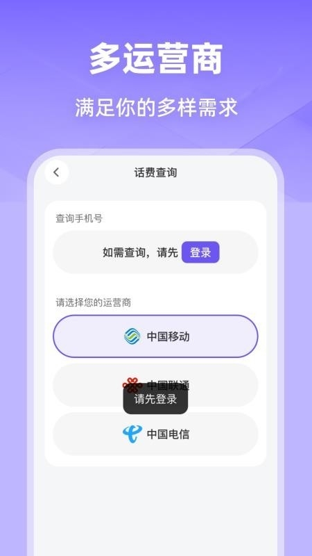 多样运营商话费查询支持,无论是中国移动、联动还是电信均可在线便捷查询;