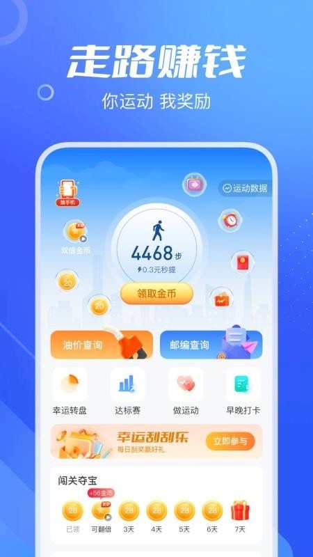 1、走路计步功能可智能追踪用户每日行走步数,数据实时更新并自动累积,便于后续兑换相应金币奖励。