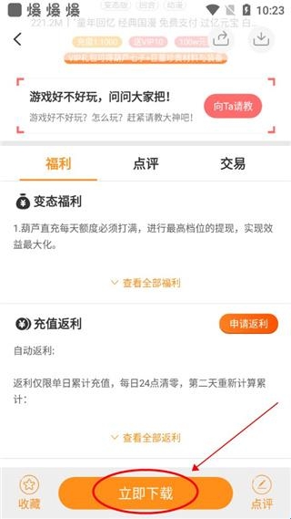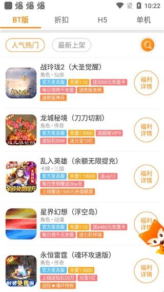 3、之后任意点击一款BT手游,在其详情页我们可以看到详细的BT版福利;