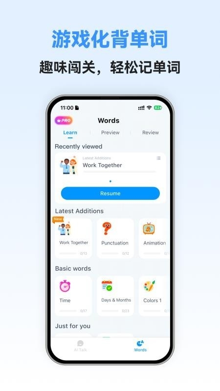 为用户提供了趣味的游戏化背单词,方便用户进行趣味闯关学习,有趣记忆单词。