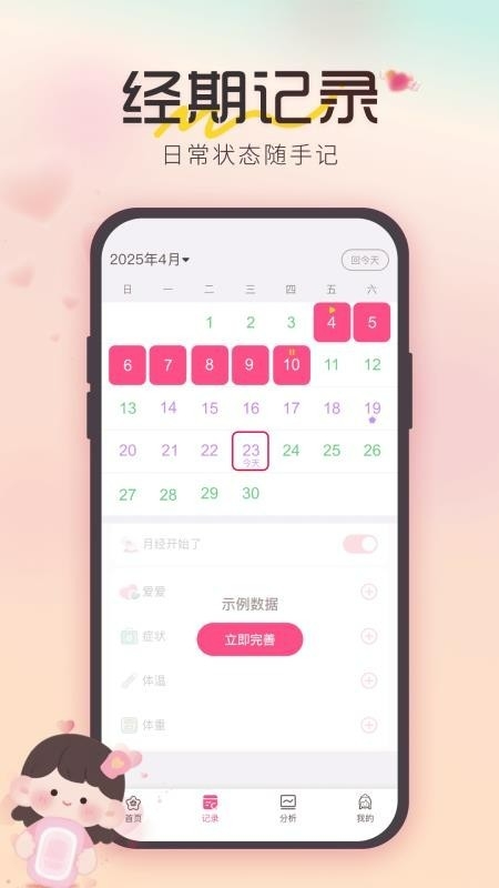 经期状况清晰查看,早早做好准备,一身轻松。