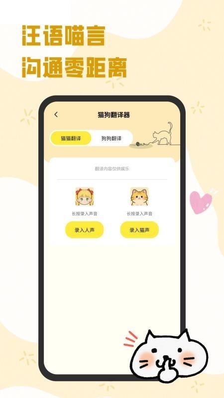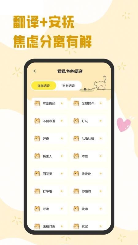 可以将各种猫狗语言进行快速翻译,让用户可以快速了解到猫狗语言意思。