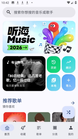 界面偏简约,无广告,核心功能集中在“找歌 + 播放 + 歌单管理”,上手成本低。