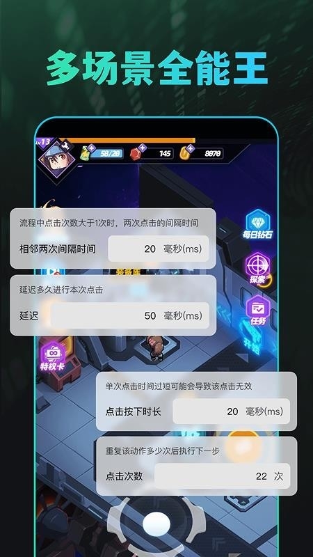 在任何的场景都适配,满足很多不同游戏的万能点击器。