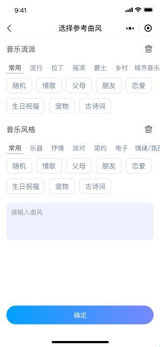 2、在风格区域,输入创作的歌曲风格,如Pop、Rock等。