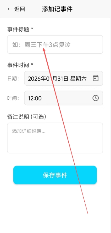 2、之后在添加记事件页面中直接输入标题、事件时间、备注说明等内容之后点击保存事件即可。