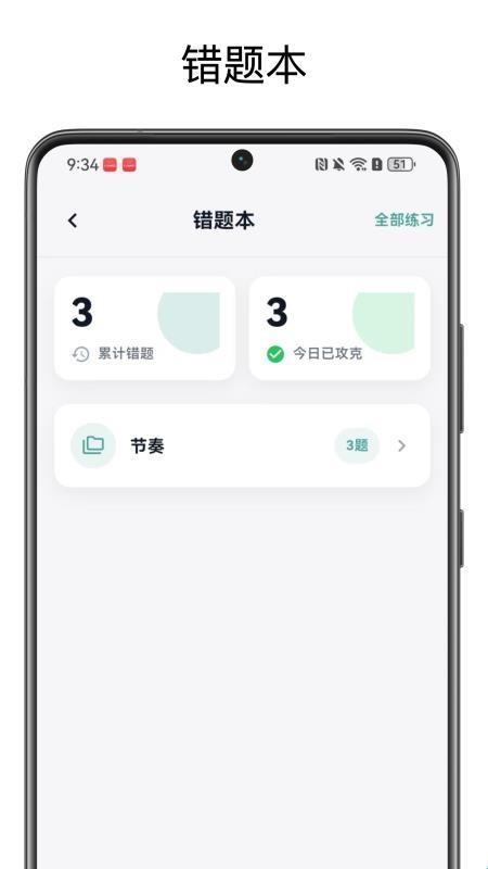 2、自动整合用户练习中的所有错题,生成错题本,方便进行统一回顾与强化训练。