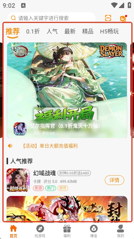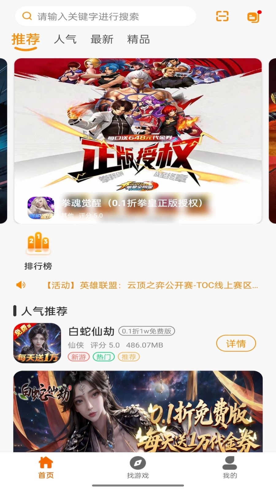 2、首页会推荐一些精品游戏