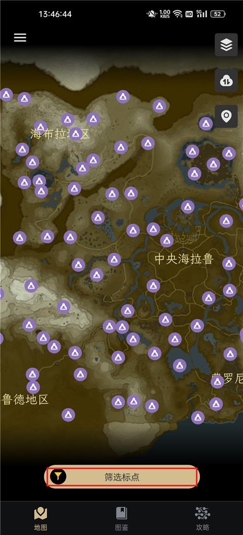 1、打开软件,可以看到地图上的各种标记点,点击筛选标点。