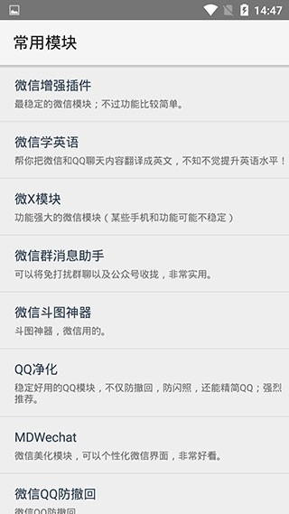 3、MDWechat: 微信美化模块,可以把微信整成MD风格。
