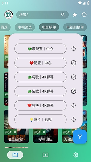 4、点击首页左上角的影视源图标即可切换。