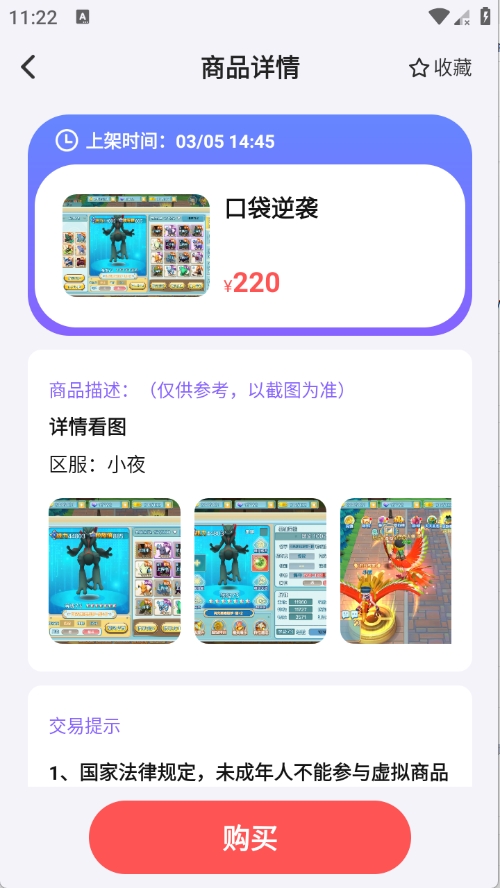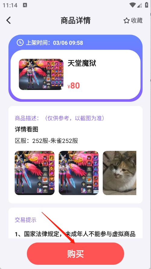 4、玩家点开需要的游戏账号进入详情页,点击购买即可。