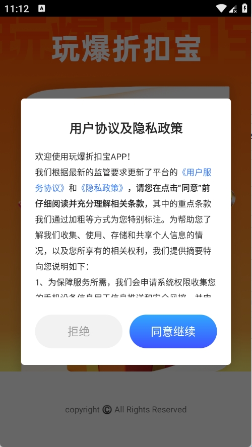 1、用户在本站下载玩爆折扣宝app,点击同意。
