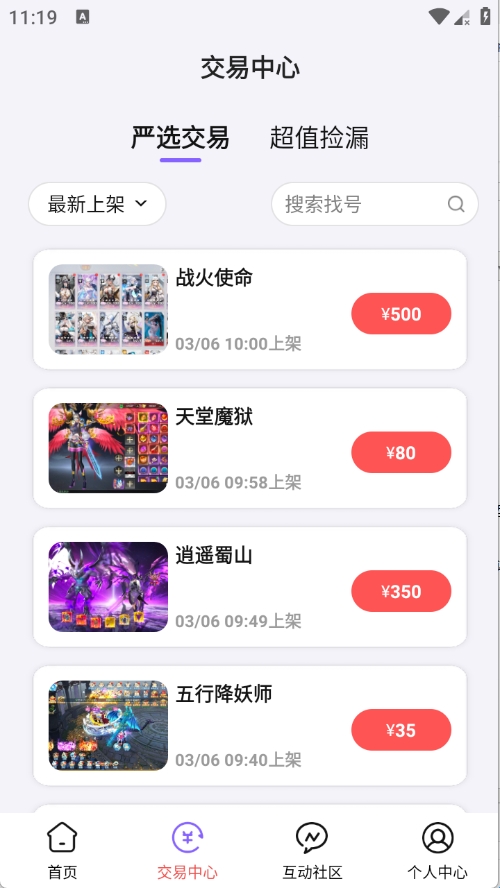 3、支持个人账号上架出售,平台审核通过后即可交易。