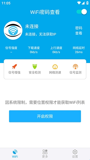 1、辅助工具:集成了多种WiFi辅助工具,如WiFi测速、流量监控、信号增强等。