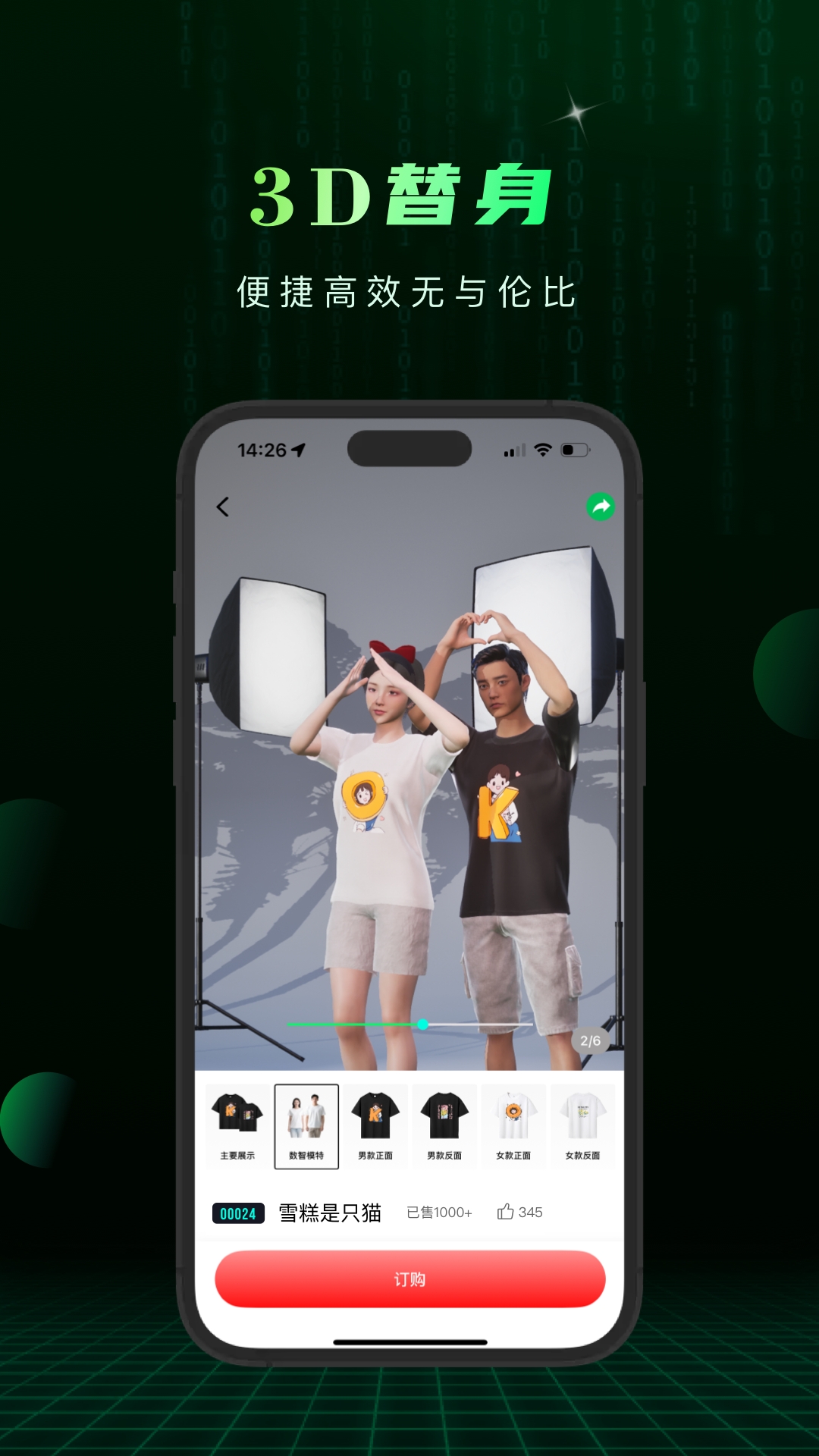 2、快速生成3D替身,搭配多样服饰预览,直观又高效,轻松打造虚拟形象用于定制。