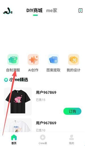 1、在软件首页, 点击自制潮服功能进入。