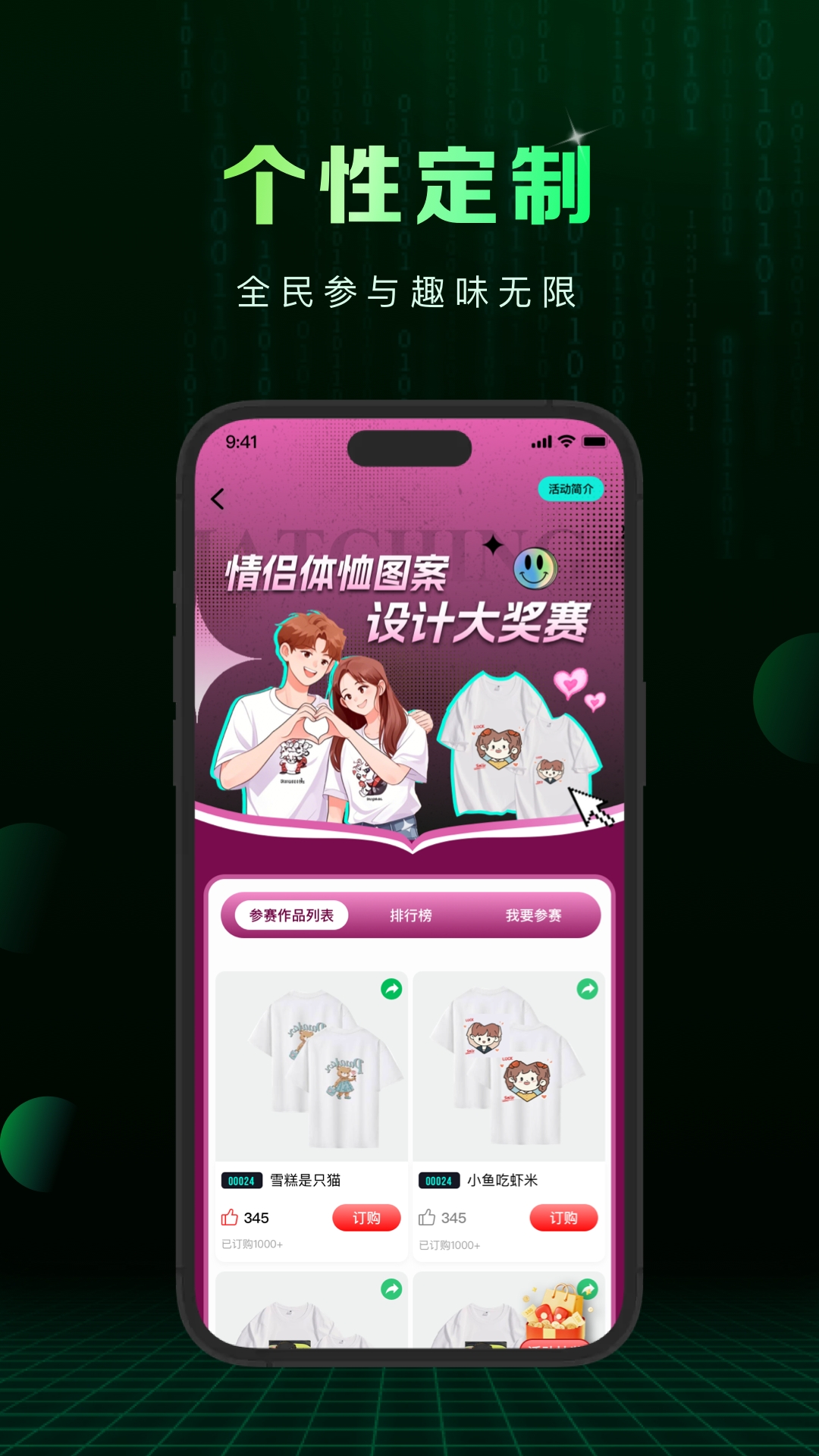 3、个性定制大赛等活动,鼓励用户参与创作、投票,形成互动生态,让定制不止于个人。