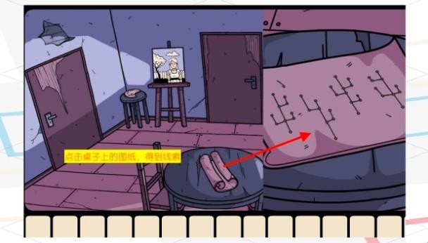点击桌子上的图纸,你会得到一些线索。