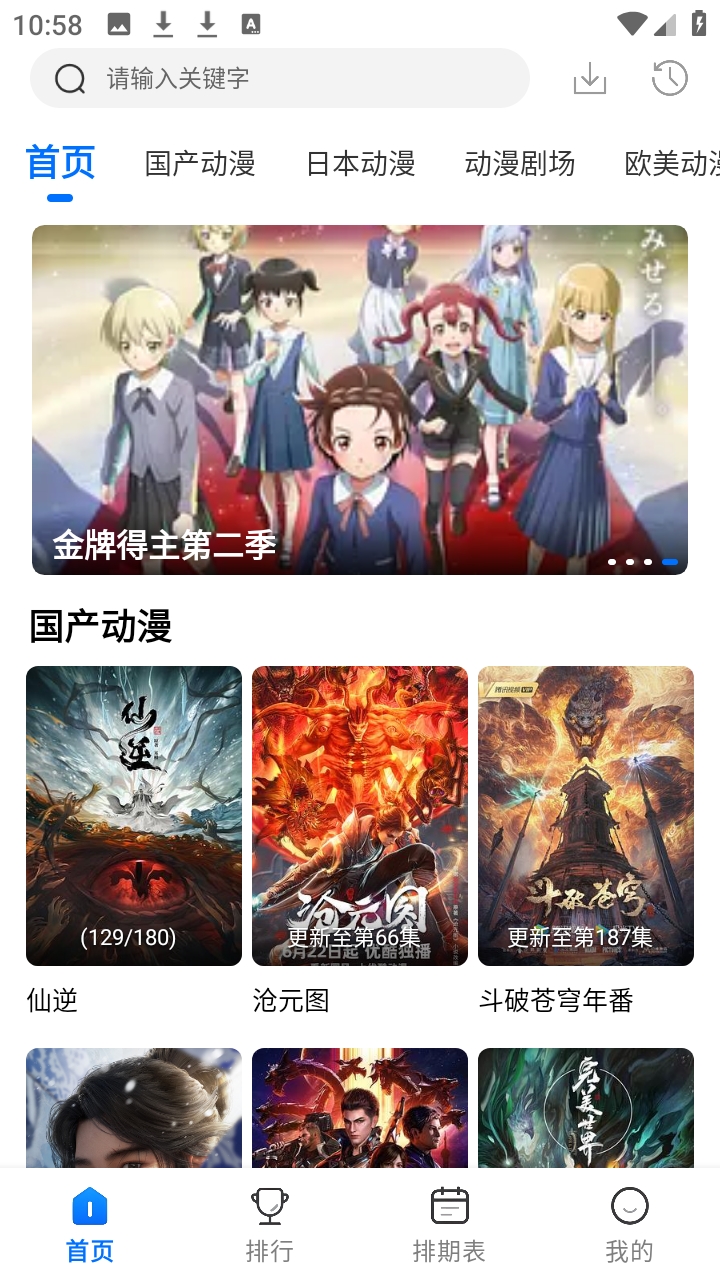 1、软件首页有国产动漫、日本动漫等多种动漫推荐。
